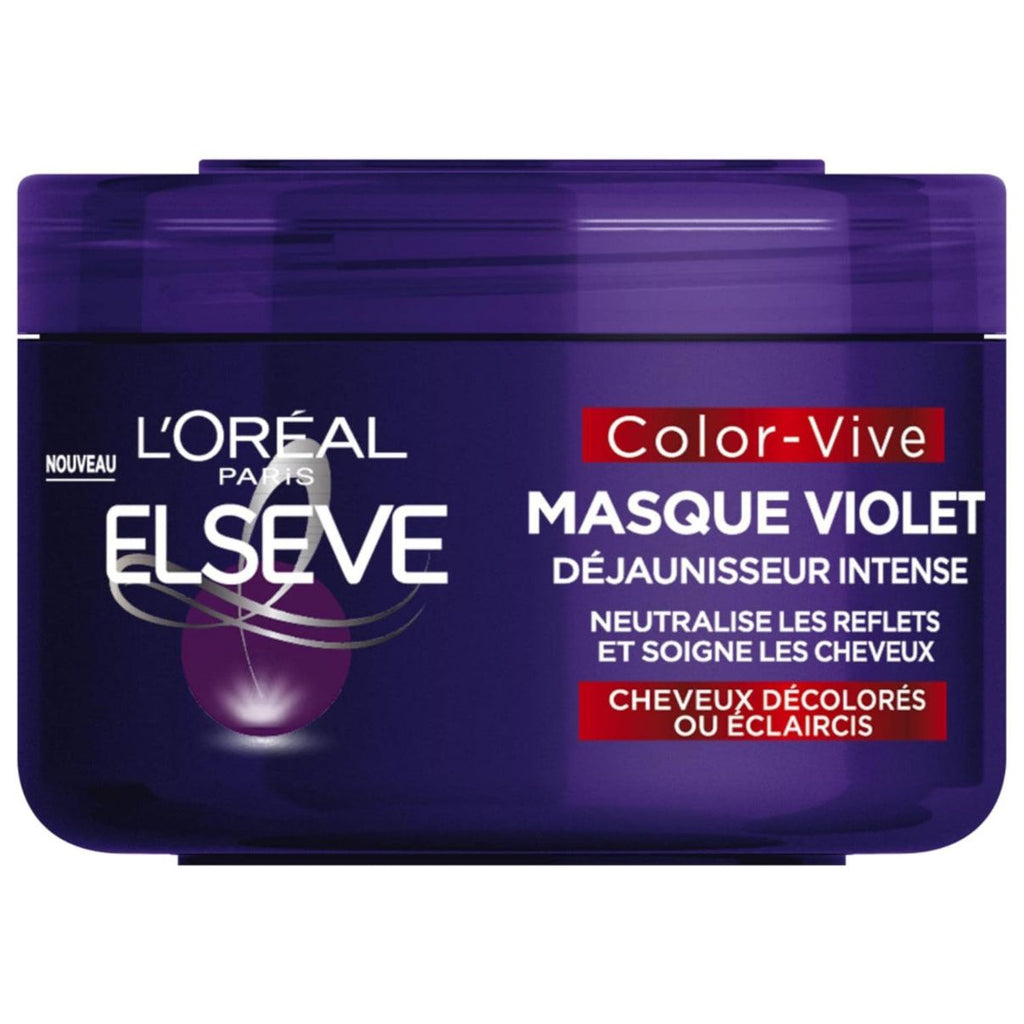 L'Oréal Paris - Masque Violet Déjaunisseur Intense - Pour Cheveux Décolorés ou Éclaircis - Neutralisation des Reflets Jaunes & Orangés - Elseve Color-Vive